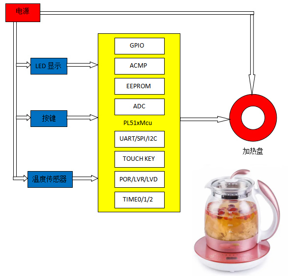 With the improvement of people's living standards, more and more people like health preservation. Juyuan microelectronics has launched a cost-effective health preservation pot control solution, which provides a complete solution with the advantages of arbitrary selection of temperature, reservation time, cooking function and simple peripheral circuit.